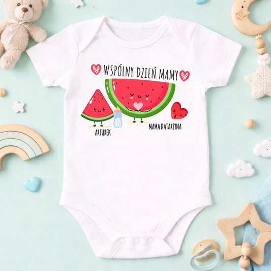 Koszulka personalizowana dla mamy i dziecka WSPÓLNY DZIEŃ MAMY | motyw z arbuzami i sercem #37