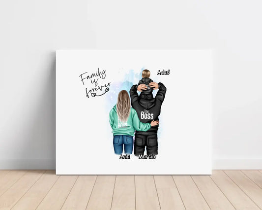 Obraz na płótnie personalizowany -mama + tata + dziecko #22