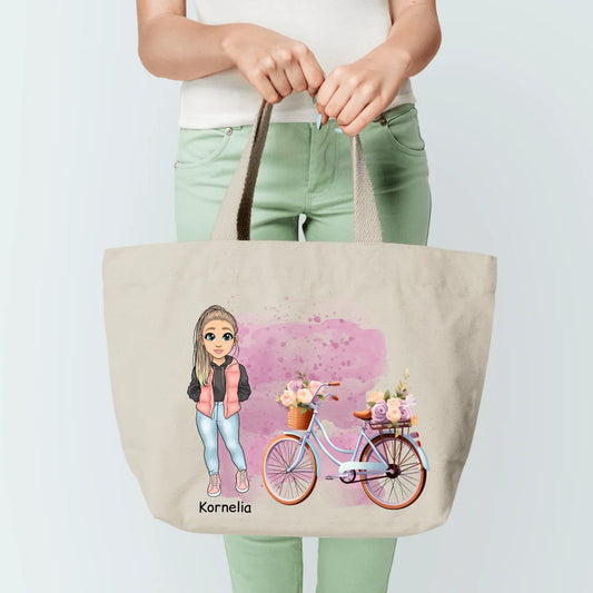 Torba materiałowa z nadrukiem - Personalizowana - dla kobiety z rowerem #4111