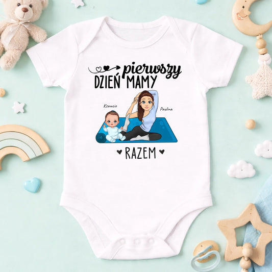 Koszulka dla Fit mamy z dzieckiem - Nasz Pierwszy Dzień Mamy - Prezent na Dzień Mamy - Personalizowana #083