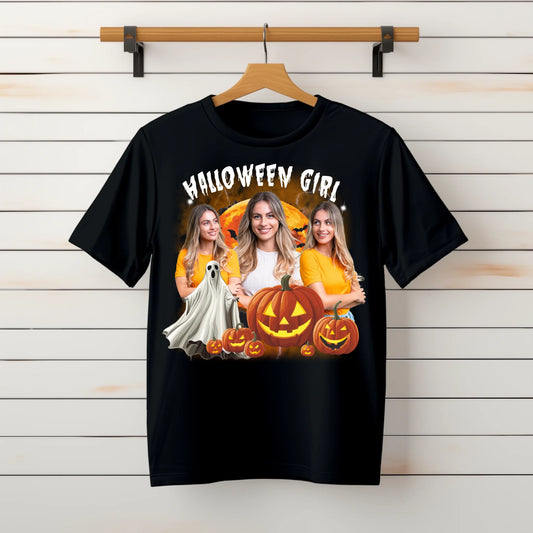 Halloweenowa loszulka Bootleg personalizowana HALLOWEEN GIRL | z personalizacją zdjęcia #308