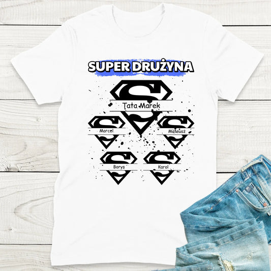 Koszulka personalizowana dla taty i dzieci SUPER DRUŻYNA | rodzinny motyw #10941