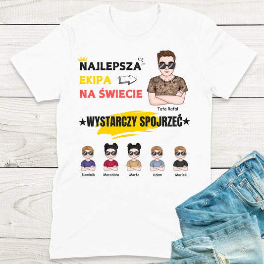 Koszulka personalizowana dla taty i dzieci NAJLEPSZA EKIPA NA ŚWIECIE