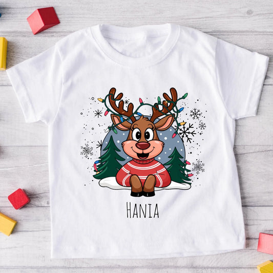 Koszulka świąteczna dla dzieci z reniferem - Personalizowana - Prezent na święta #915
