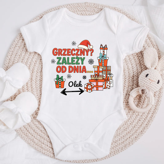 Koszulka dziecięca personalizowana GRZECZNY? ZALEŻY OD DNIA | zabawny motyw świąteczny #129