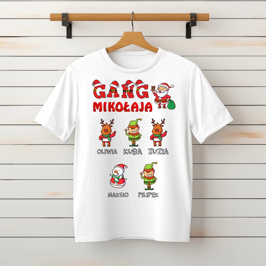 Świąteczna koszulka personalizowana dla rodziny GANG MIKOŁAJA | z personalizacją imion #602