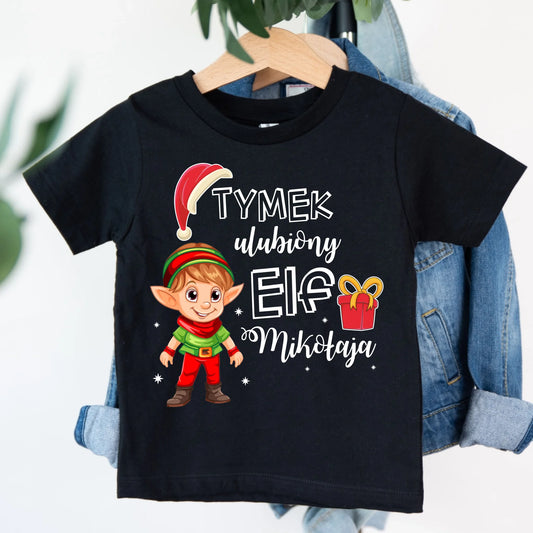Świąteczna koszulka personalizowana dla dziecka ULUBIONY ELF MIKOŁAJA | motyw z elfem #601