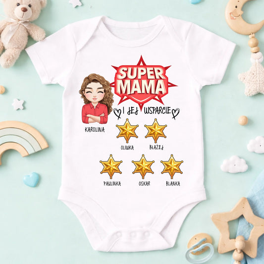 Koszulka Super Mama + 1-5 dzieci - Personalizowana (rodzinna) #2728