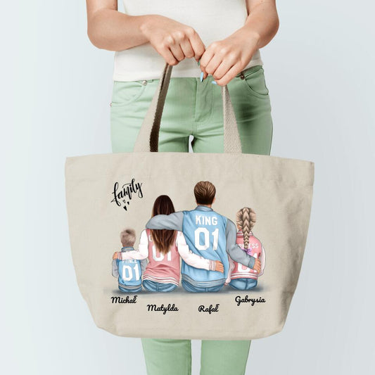 Torba materiałowa personalizowana rodzinna + 2 dzieci #P2