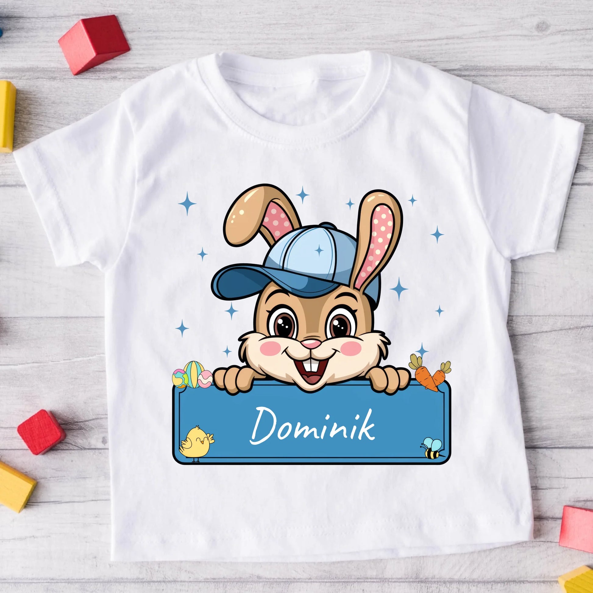 Koszulka dla dziecka z króliczkiem i imieniem - Prezent na Wielkanoc - Personalizowana #471