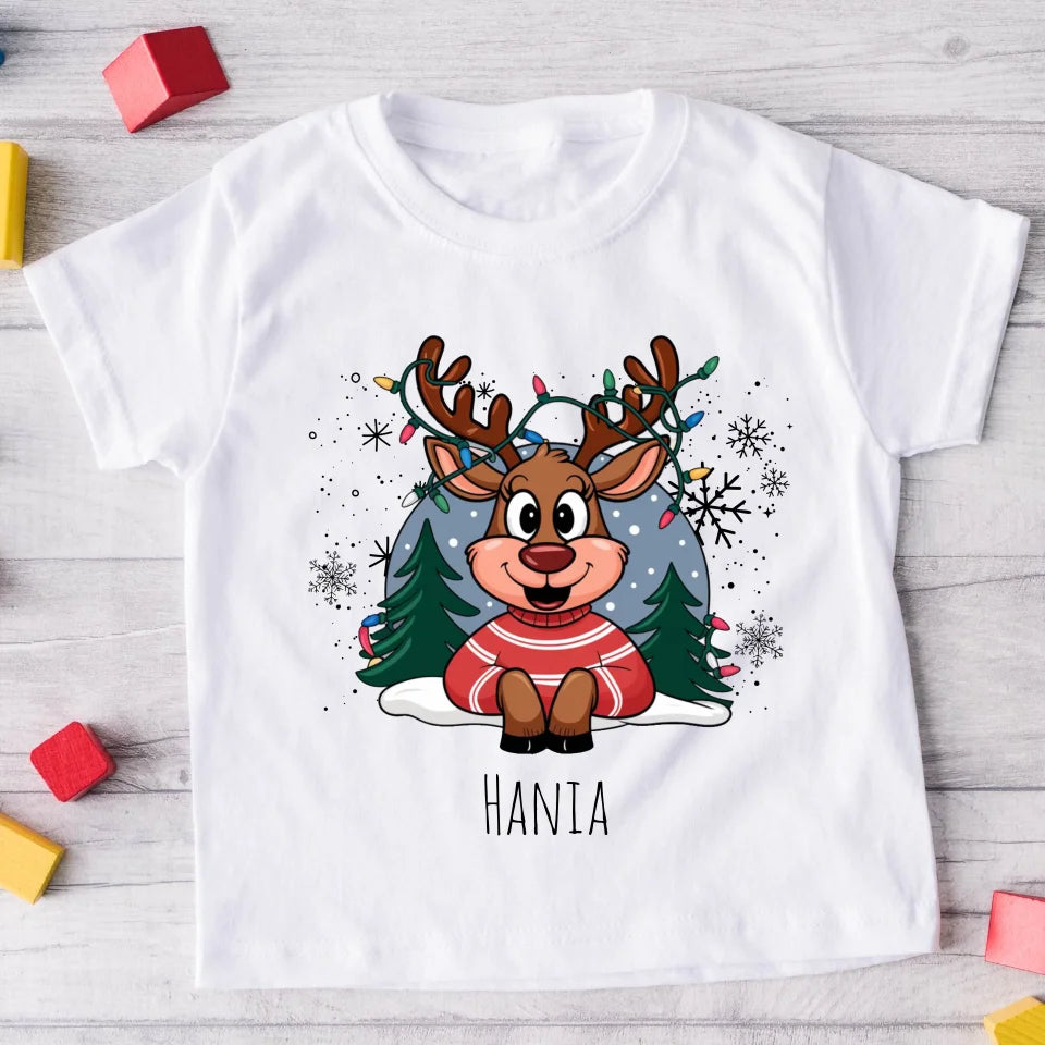 Koszulka świąteczna dla dzieci z reniferem - Personalizowana - Prezent na święta #915