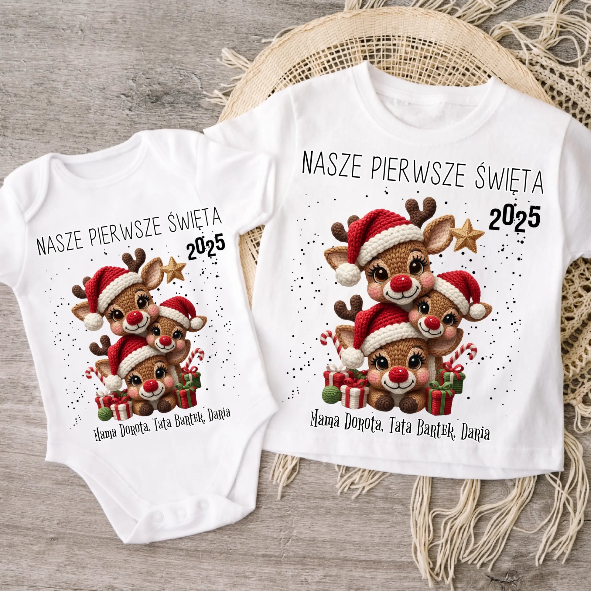 Koszulka świąteczna dla rodziny z reniferem - nasze pierwsze święta 2025 #9241