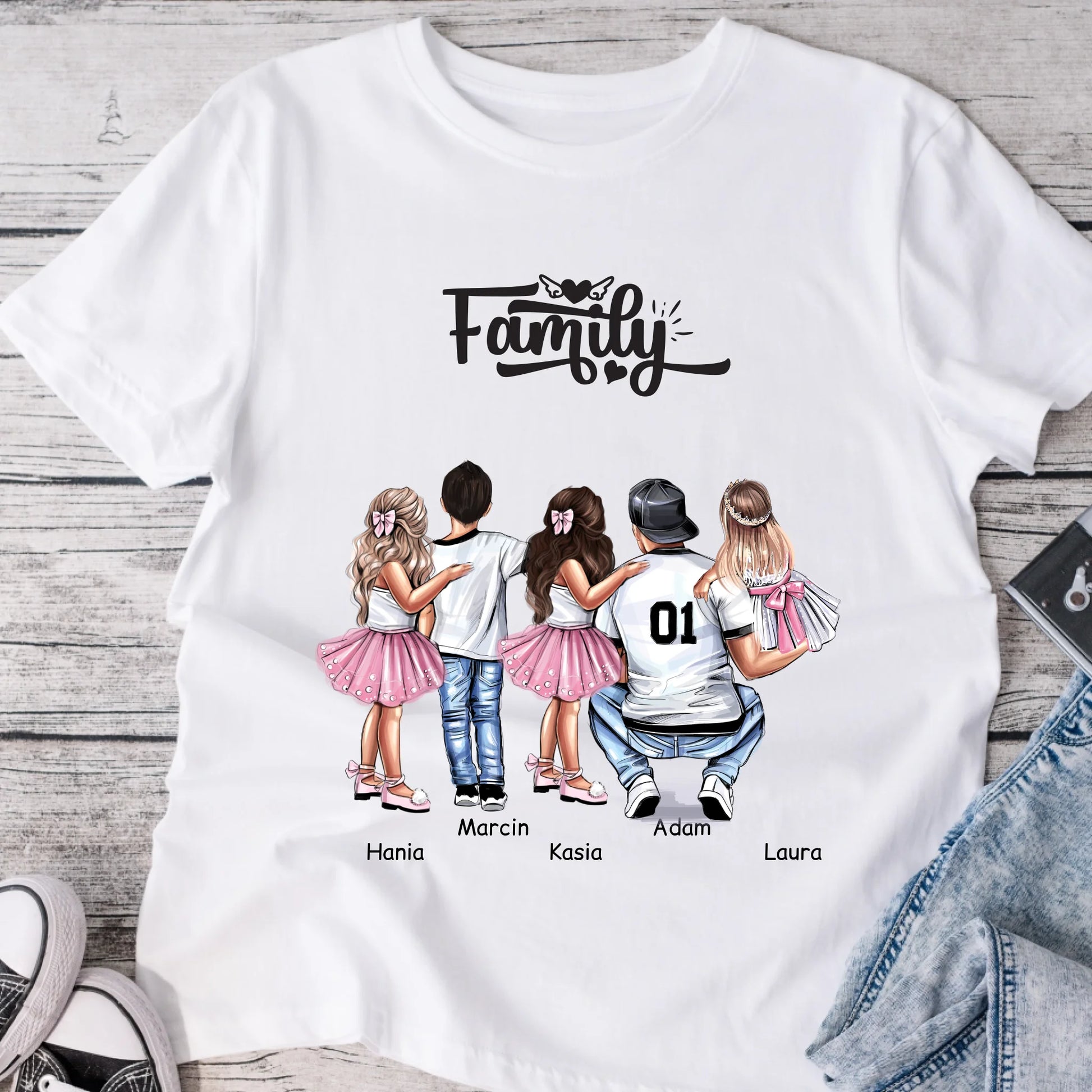 Koszulka dla taty + 1-4 dzieci - Personalizowana (rodzinna) #P8