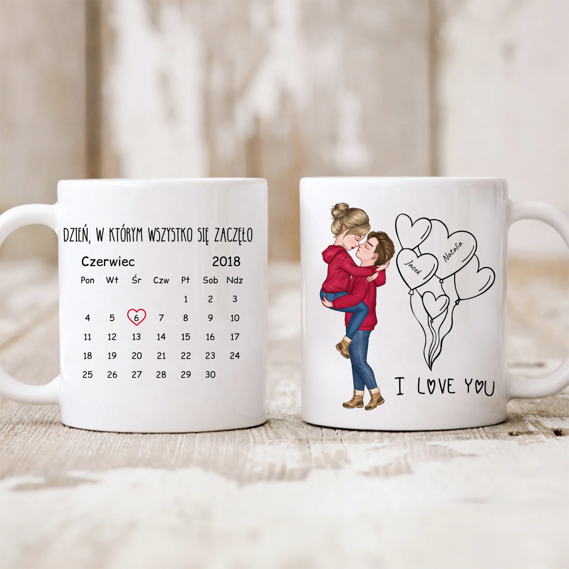 Kubek dla par z kalendarzem - Personalizowany - Prezent na walentynki #4500