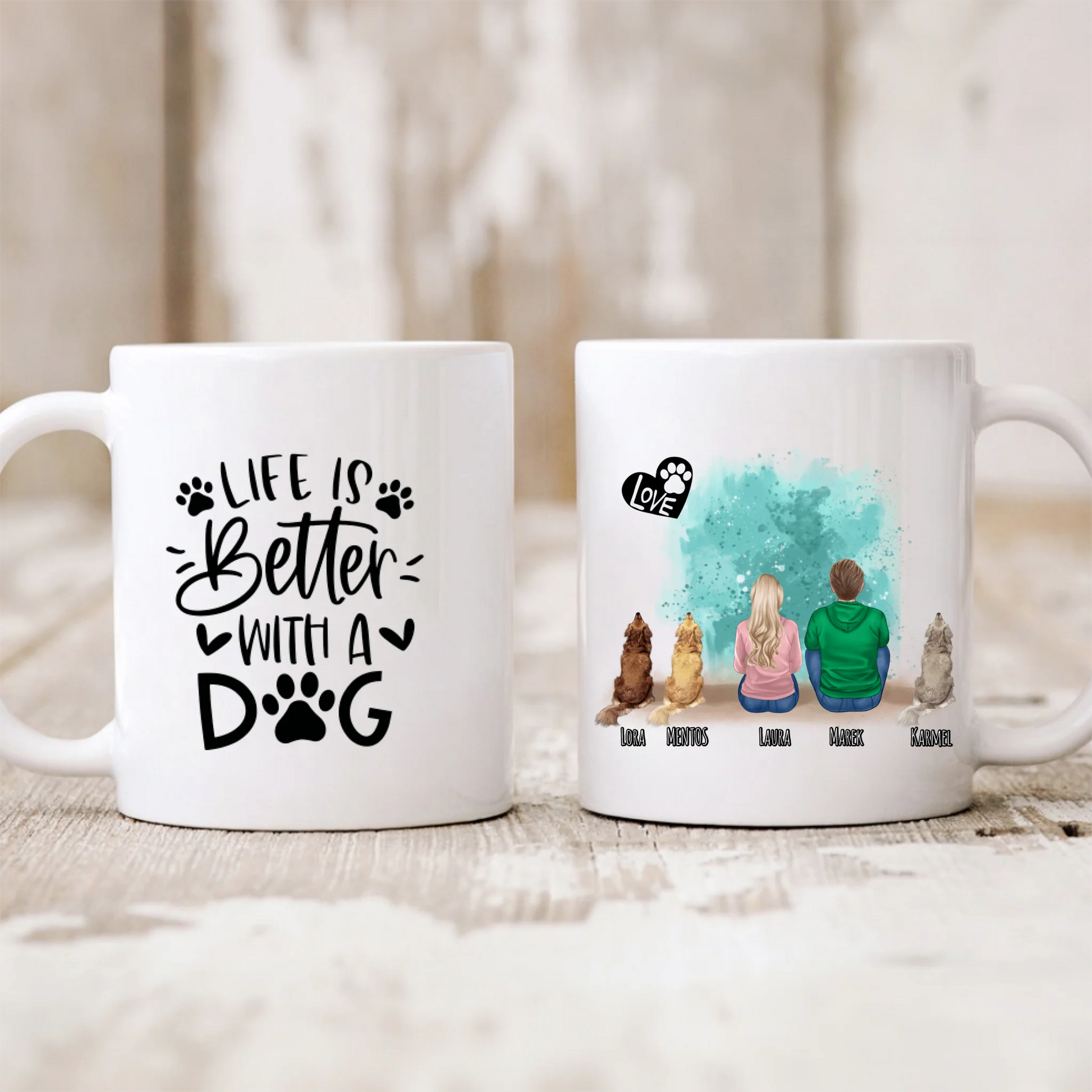 Kubek personalizowany - kubieta lub mężczyzna + 1-3 psy #P43