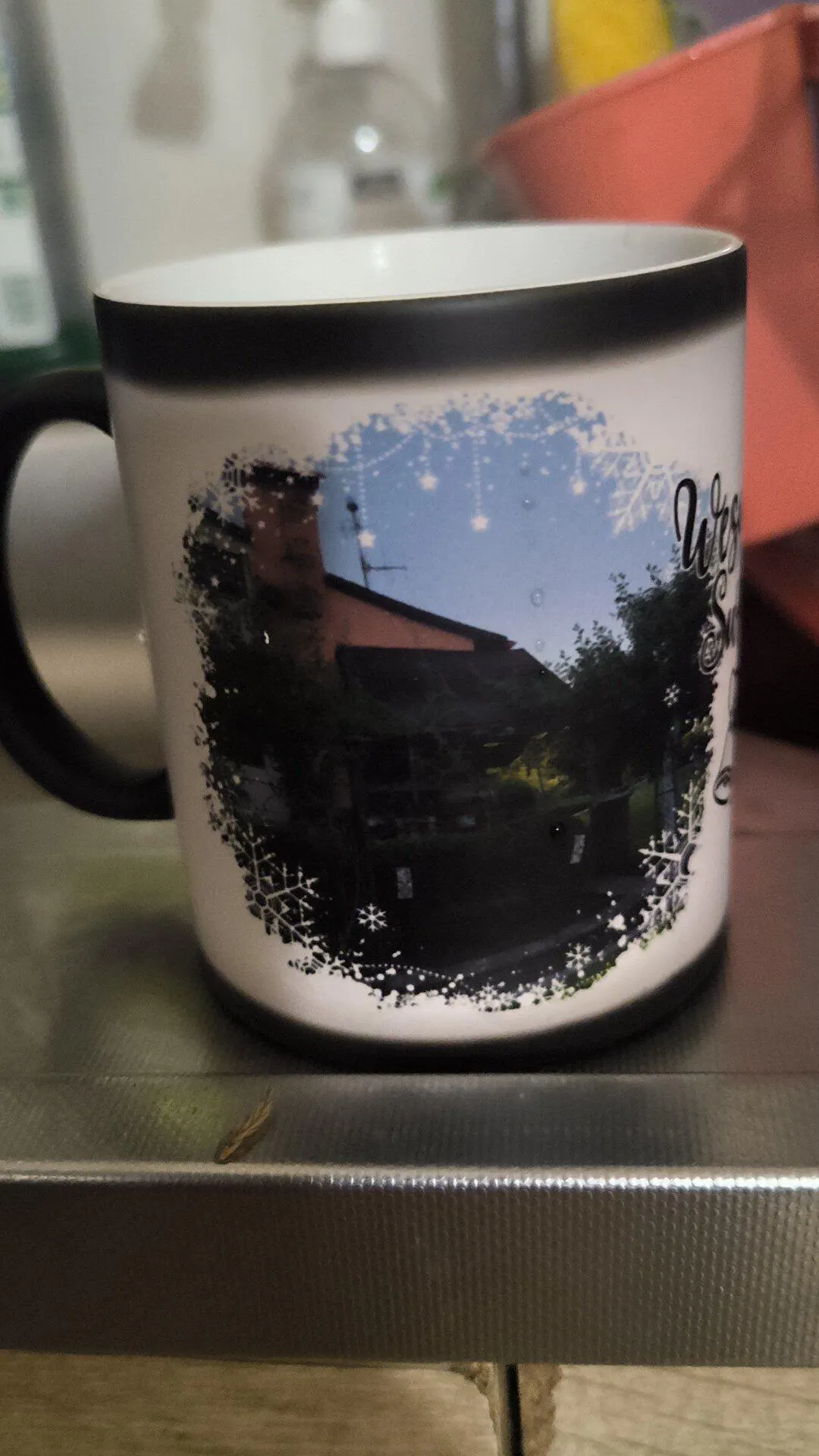Świąteczny kubek personalizowany WESOŁYCH ŚWIĄT | motyw z dzwoneczkami i z personalizowanym zdjęciem #8441